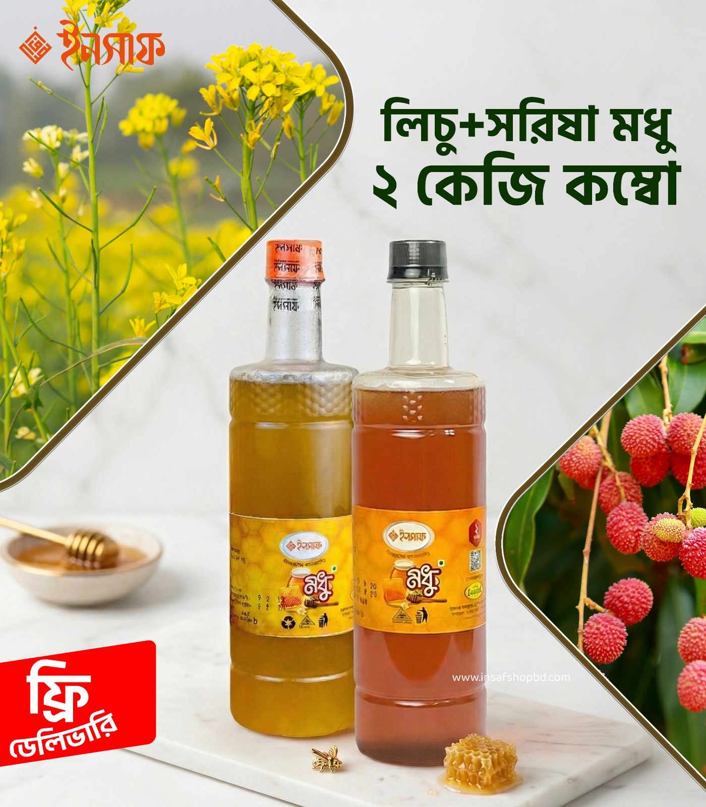 লিচু ও সরিষা ফুলের মধু (২ কেজি কম্বো)